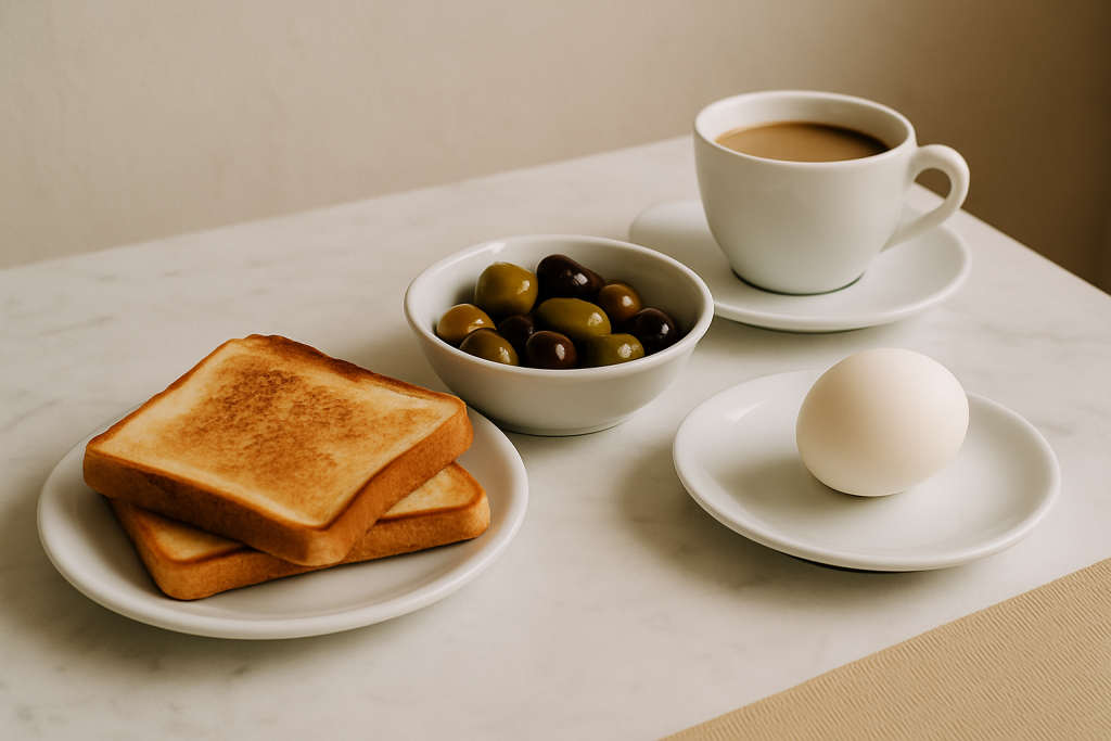 1つ星ホテルの朝食は質素だ。薄切りの安っぽいトーストとゆで卵とオリーブ。でも30ユーロでそこまでしてくれるのだから、不満など何もない。しかし、そのトーストがまた美味しい。日本では滅多にトーストは食べないけど、知らない街で食べる朝のトーストほど美味しいものを僕は知らない。