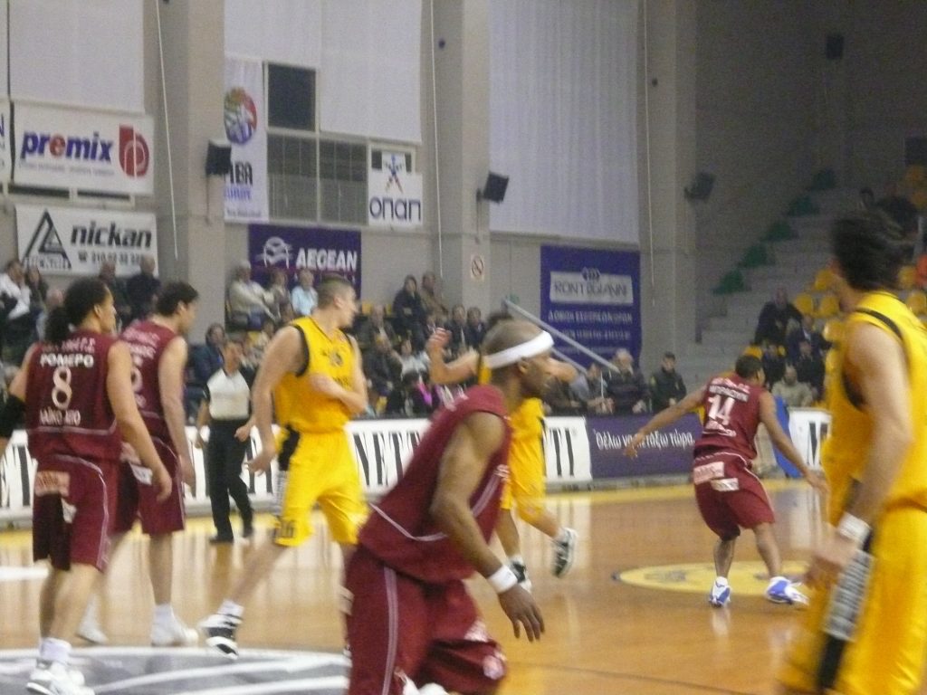 また、イタリアに行っても、ギリシャに行っても、必ずアメリカ人選手がいる。彼らは世界中に選手を送り出している。この日も両チームでアメリカ人選手がプレイし、ホームチームLarissaのヘッドバンドを付けた黒人SGは、なんとなく見覚えがあった。しかし、劣勢の中で最後までファイトし続ける彼が何者なのか、会場では全く思い出せなかった。